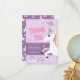 Tarjeta De Agradecimiento Niñas Cumpleaños Mágico Unicornio Morado Kids