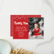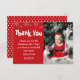 Esta linda tarjeta de agradecimiento es una excelente manera de agradecer a amigos y familiares por su compañía y regalos después del período festivo. Esta tarjeta presenta un texto que dice 'GRACIAS' con copos de nieve en la parte superior de la tarjeta y tu foto favorita de Navidad, un mensaje personal de gratitud o mantener la plantilla y luego quién es. Todos los estilos de fuente de texto, tamaño y colores se pueden cambiar haciendo clic en el enlace personalizar más después de personalizar.