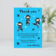 Crea una celebración de cumpleaños memorable y divertida para el lindo niño ninja en tu vida. Esta tarjeta de agradecimiento de cumpleaños fácilmente personalizable es parte de un conjunto de accesorios de fiesta de cumpleaños a juego. Puedes organizar la mejor fiesta de cumpleaños con tema de ninja para tu pequeño entusiasta de las artes marciales. Solo agrega tus propios detalles para personalizar, y no te olvides de los platos de fiesta, tazas, servilletas y todos los elementos esenciales. Este diseño presenta algunos pequeños ninjas lindos en blanco y negro con un fondo de colores brillantes.