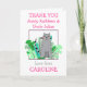 Dar las gracias de parte de tu hijo es más especial para su tía y tío cuando se personaliza con sus nombres, así como con el nombre de tu hijo, y un mensaje personalizado, y una ilustración de un gato lindo y hojas verdes. Personaliza fácilmente la tipografía con tus propios datos. También puedes cambiar el fondo blanco y los colores del texto rosa si lo deseas a través de la opción Personalizar más.