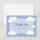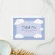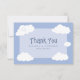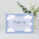 La tarjeta de agradecimiento de celebración de boda linda cuenta con nubes caprichosas en un fondo de cielo azul con los recién casados en la nube nueve. Personalice los nombres y la fecha del evento en fuente azul elegante para hacerlo suyo. La parte trasera de la tarjeta es blanca crujiente y perfecta para su nota de agradecimiento manuscrita personalizada. La tarjeta de agradecimiento divertida es parte de una colección de boda casual única y personalizable. No te pierdas la diversión - ¡ordena el tuyo hoy!