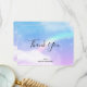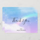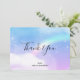 Tarjeta de agradecimiento con una suave y encantadora imagen de fondo. Nubes azules y rosadas pastel y un arcoíris mágico.