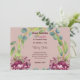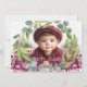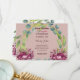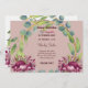 "Nuestra calabaza se está volviendo una" Primer cumpleaños fiesta Gracias tarjeta por sus invitados. Guau con la florida corona de vegetación y las vibrantes calabazas de caída violeta. El diseño tiene hojas de otoño, una corona circular de vegetación y calabazas púrpura para celebrar los colores del otoño. El ilustracion utiliza escritura moderna y tipografía que se pueden personalizar fácilmente. El lado inverso tiene un diseño similar.