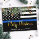 Envía saludos de Feliz Navidad y muestra agradecimiento a tu oficial de policía favorito y a los departamentos de aplicación de la ley con esta tarjeta especial de agradecimiento de la policía de la Línea Azul delgada - negro y azul moderno con hojas y bayas huecas con escritura dorada. Personalizar con mensaje. Esta tarjeta de agradecimiento de los navidades de policía es perfecta para los departamentos de policía y para los encargados de hacer cumplir la ley. DERECHOS RESERVADOS © 2020 Judy Burrows, Black Dog Art - Todos los derechos reservados. Oficial de policía Aplicación de la ley Feliz Navidad Tarjeta de agradecimiento
