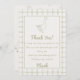 As you see this 1st birthday thank you card features the one silly goose green theme. With hand drawn goose and gingham checkboards and ribbon bow with hand written script of thank you and thank you paragraph template. All of this design template is easily customizable by clicking on the personalization button.