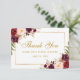 Tarjeta de agradecimiento de Shower de boda floral borgoña oro - Escritura dorada - Reverso borgoña