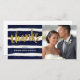 Esta tarjeta de agradecimiento glam presenta Relieve metalizado de oro falso, caligrafía con escritura de pincel con letras a mano, rayas de color azul marino pintadas y una plantilla de fotografía cuadrada.