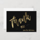 Crea una tarjeta plana de agradecimiento personalizada y espléndida, chic, minimalista y simple para tu próxima boda. Esta tarjeta plana de agradecimiento presenta una escritura de caligrafía espaciosa y hermosa en letras de lámina de oro falso sobre un fondo negro de pizarra. Puedes personalizarla fácilmente con tu propio texto y adaptarla a tu gusto. Tenga en cuenta: el arte del "Agradecimiento" no se puede editar. Nota adicional: la impresión de lámina dorada es un efecto de lámina dorada falsa. NO es la auténtica lámina dorada de estampado en caliente.