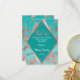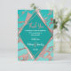 Elegante, chic y moderno con un toque retro, falso estampado en forma de diamante geométrico de oro rosa sobre fondo verde turquesa y mármol de oro rosa con recortes de diamante en color malva y rosa pálido, tarjetas de agradecimiento. Este diseño clásico y sofisticado es perfecto para cualquier evento elegante y de moda, incluyendo bodas y ocasiones cotidianas. Todo impreso con fotografía.