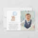 Tarjeta De Agradecimiento Oso cumpleaños 1 año oso globo azul Foto Plana