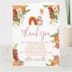 Un lindo oso de peluche gracias a la invitación a la ducha de bebé con color de tierra, en rojo, verde, naranja y marrón con arcoiris, lindo oso y globo naranja, con acuarela floral otoño y una tipografía de escritura moderna.