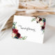 Esta tarjeta de agradecimiento de dama de honor de color burgundy rústico de otoño es perfecta para una boda moderna. El diseño presenta flores radiantes y elegantes pintadas a mano en burgundy, rojo, azul marino, azul y rosado, que inspiran belleza natural.