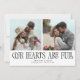 Modern and minimal wedding thank you photo card featuring a text that says "Our Hearts Are Full" with 2 of your wedding pictures. You can add another photo on the back with a message. White and black.