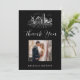 Country Western Barn Boda tarjeta de agradecimiento. Esta es una foto tarjeta de agradecimiento para el granero occidental. Incluye un granero en la parte superior y una foto de las hermosas recién casadas. Gracias está escrito en un elegante guión tipo caligrafía mientras el granero transmite el tema del boda que fue un boda relajante de tiempo de diversión con mucha danza. Enséñale la gratitud a los invitados que asistieron a su boda con este agradecimiento muy especial.