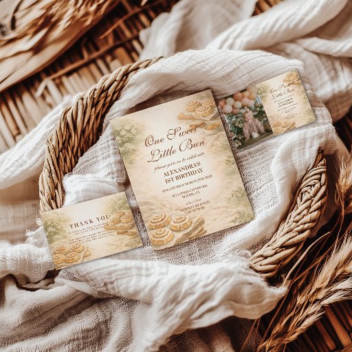 Celebra un primer cumpleaños acogedor con este diseño inspirado en rollos de canela que presenta detalles suaves de panadería, texturas rústicas y una paleta neutral suave. Perfecto para una “pequeña bollo” o una fiesta con tema de panadería, esta invitación establece un tono dulce y acogedor para un primer cumpleaños memorable. Totalmente editable para personalizar nombres, fechas y detalles de la fiesta.