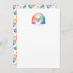 Agrega un toque de color a tus notas con este papel de carta personalizado que presenta un arcoíris en acuarela, un corazón floral y nubes pastel. La parte trasera está impresa con un patrón coincidente alegre, mientras que la parte delantera deja espacio para tu mensaje y nombre personalizado. Perfecto para notas de agradecimiento, cartas de cumpleaños o correspondencia diaria con un toque caprichoso.