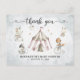 Tarjeta postal de agradecimiento para Baby Shower con animales de circo en acuarela. Para personalizar, escriba el texto en lugar de la muestra en el campo de edición anterior a la derecha. También puede cambiar la tipografía, el color y el tamaño de la fuente si lo desea.