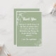 Tarjeta de agradecimiento para baby shower de color sage verde. El mensaje agradece a los invitados por venir al baby shower.