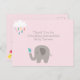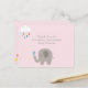 La tarjeta de agradecimiento para baby shower de elefante es una forma económica de agradecer a sus invitados por asistir a su baby shower. Utilice la plantilla fácil para cambiar los detalles según sus necesidades. El fondo salpicado de rosa es perfecto para las niñas.