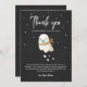 Tarjeta de agradecimiento para baby shower de Halloween de fantasma lindo, característica de diseño fantasma pequeño con chupete y bufanda naranja. Texto menciona "Gracias por bañar a nuestro pequeño fantasma" también puede editar el mensaje de agradecimiento. Perfecto para baby shower en otoño