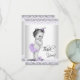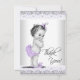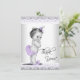 Tarjeta de agradecimiento para baby shower de lavanda y gris con adorable bebé vintage con pantalones de volantes lavanda morado y zapatillas con lazo morado en el pelo sobre un elegante fondo de encaje lavanda y gris. Esta linda tarjeta de agradecimiento para baby shower de lavanda y gris se personaliza fácilmente agregando su mensaje, o déjela en blanco para agregar su mensaje a mano cuando lleguen.