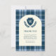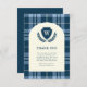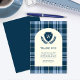 Para la futura madre que espera un bebé varón. Tarjeta de agradecimiento de baby shower con monograma de cuadros azules marinos. Agradezca a sus invitados por asistir a su baby shower y por sus regalos con una nota de agradecimiento. Personalice con la inclusión de su inicial de monograma, mantenga el texto de 'GRACIAS' en el medio del diseño tal como está o edite e incluya su propio mensaje de agradecimiento en la parte inferior del diseño. Parte de la colección de baby shower Monograma de cuadros azules marinos. Una colección de baby shower clásica, atemporal y elegante.