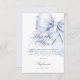 Esta elegante tarjeta presenta un encantador lazo azul perfecto para un baby shower nupcial de "algo azul". Diseñada en acuarela pastel suave, combina una romántica escritura a mano con elementos caprichosos de moda. Ideal para un baby shower nupcial de color azul polvoriento.