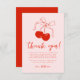 Tarjeta de agradecimiento para baby shower nupcial de cereza retro rosa