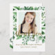 Elegante y moderna tarjeta de agradecimiento - agregue una foto, nombres y mensaje personalizado de agradecimiento (al dorso). Acuarela botánica, vegetación, hojas son el elemento clásico de diseño. Para artículos coincidentes, diseño personalizado o asistencia, contacte con la diseñadora LeahG
