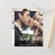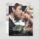 Boda de fotos con guiones bajos y bajos gracias a la elegante y elegante tarjeta de crédito de mano moderna. Modern Stylish boda gracias plantilla que incluye una foto vertical completa en el frente con el texto superpuesto "Gracias" en una letra manuscrita de tipografía escrita a mano en blanco en la imagen. ***POR FAVOR, TEN EN CUENTA QUE! *** PAPEL PRESUPUESTARIO/VOLADOR ES PAPEL DELGADO. *** ACTUALIZAR EL PAPEL PARA UN PAPEL MÁS AGRADABLE. *** Añade tu nombre personalizado y mensaje de agradecimiento. Si prefiere escribir a mano la nota, simplemente elimine el texto de ejemplo para hacer más espacio. Si necesitas ayuda, por favor contacta a un diseñador!