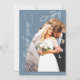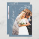 Dusty Blue Arch Botanical Leaf & Elegant Calligraphy Boda (Dos Foto) Gracias Tarjeta.