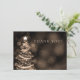 Diseño elegante de tarjeta de agradecimiento para boda con motivo de árbol de Navidad brillante en negro y dorado, nombres personalizados y texto de fecha. Impresiona a tus familiares y amigos con este diseño moderno y elegante. ¡Totalmente personalizable! Fácil de usar y fácil de personalizar.
