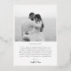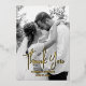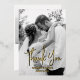 Amplíe su más sincero agradecimiento con esta exquisitamente personalizada tarjeta boda de agradecimiento. Con elegantes fotos en blanco y negro de los recién casados y la opción de un verdadero acento de Relieve metalizado en su elección de oro, plata o oro rosa, esta carta emana una sofisticación intemporal. Gire para descubrir una sección de mensajes sentidos que pueda adaptar a su gusto. Con ilimitadas posibilidades de personalización, esta tarjeta ofrece una manera única y significativa de transmitir su gratitud con un toque personal. Elige la sombra del Relieve metalizado que se completa perfectamente con tu estilo y te da una impresión duradera con esta exquisita tarjeta de agradecimiento. Los huéspedes se sentirán conmovidos por este toque de elegancia y apreciación adicional.