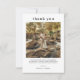 Elegante tarjeta de agradecimiento de bodas con una imagen de su gran día, las palabras "gracias", un mensaje personalizado y sus nombres.