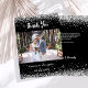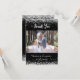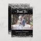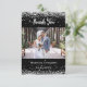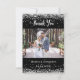 Celebra tu día especial y expresa tu más sentida gratitud con nuestras tarjetas de Personalizado para la boda de fotos, elegantemente diseñadas con un sofisticado fondo negro y adornadas con falsos confetti de plata. Perfecto para compartir tus recuerdos bodas favoritos, estas tarjetas son elegantes y personales, ofreciendo una manera única de agradecer a tus invitados. Personaliza y agrega tu foto y nota de agradecimiento.