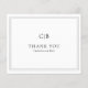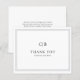Elegante Boda de presupuesto Gracias Tarjeta en texto negro clásico sobre un fondo blanco con su monograma junto con sus nombres rodeados por un borde doble. Los colores del tipo de letra y del borde pueden cambiarse a cualquier color que desee en la herramienta de edición de diseño. Una tarjeta de agradecimiento Boda de estilo tradicional con un diseño limpio e intemporal perfecto para un boda formal.