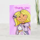 Tarjeta de agradecimiento moderna y gráfica para después de la fiesta de niñas. Niña abrazando a su conejo blanco de la suerte. Personaliza esta tarjeta con el mensaje de agradecimiento que desees. Diseño original de Sarah Trett.