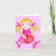 Tarjeta de agradecimiento después de la fiesta para niñas con arte de muñeca adorable. Muñeca de acuarela abrazando una almohada con corazón. Personalice esta tarjeta con el mensaje de agradecimiento de su elección. Arte original de acuarela por Sarah Trett www.sarahtrett.com para www.mylittleeden.com en zazzle.