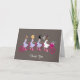 Tarjeta de agradecimiento linda para damas de honor y dama principal en color taupe, con divertidas gráficas de tres damas de honor y una novia montando una bicicleta rosa caliente de varios asientos. Personalice todo el texto para adaptarlo a sus necesidades. La tarjeta perfecta de la novia para su grupo nupcial.