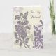 Tarjeta de agradecimiento para dama de honor para tu amiga en tonos beige y púrpura elegantes con delicado diseño floral.