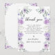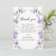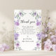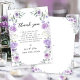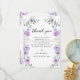 Comparte tu gratitud con estilo con estas tarjetas de agradecimiento para despedida de soltera florales chic y dulces, que presentan una corona bohemia con flores púrpuras y lavanda entrelazadas con hojas de eucalipto verdes. Perfectas para una celebración de despedida de soltera con estilo, estas tarjetas añaden un toque de moda y sofisticación. Ideales para celebraciones de despedida de soltera en primavera o verano.