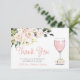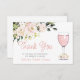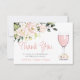 Esta tarjeta de agradecimiento presenta una copa de vino de color rosa dorado con flores rosadas. Es perfecta para un fin de semana de fiesta de despedida de soltera en viñedo o bodega.