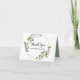Esta tarjeta de agradecimiento para despedida de soltera con hojas verdes tropicales es perfecta para una despedida de soltera sencilla. El diseño presenta hermosas hojas verdes pintadas a mano que adornan un marco geométrico dorado.