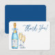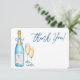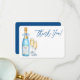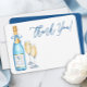 Envía un agradecimiento sincero con estilo con esta elegante tarjeta de agradecimiento para despedida de soltera. Parte de la colección “Something Blue Before I Do”, cuenta con una botella de champán azul pintada con acuarela, copas burbujeantes y un delicado acento de anillo de diamantes. Personaliza con el nombre de la novia y los detalles del evento para coordinar perfectamente con tu celebración de tema azul o ducha de champán.