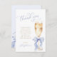 Envía tus agradecimientos sinceros con esta elegante tarjeta de agradecimiento que presenta una escritura elegante y un lazo azul polvoriento suave atado a una copa de champán.