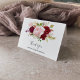 Esta tarjeta de agradecimiento para despedida de soltera tropical roja es perfecta para una despedida de soltera en destino. El diseño artístico bordo marsala presenta rosas de acuarela, verde, rosa, burdeos y rubor mezcladas con follaje dispuestas ordenadamente en un ramo de flores radiante y elegante. Estas tarjetas pueden ser utilizadas para una boda, despedida de soltera o cualquier evento especial.