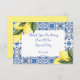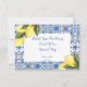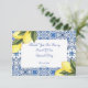 tarjeta de agradecimiento para despedida de soltera de limoncello en tonos amarillos y azules.