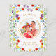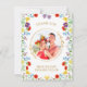 Boda de fotos de flores silvestres de primavera coloridas, gracias tarjeta a sus invitados por ser parte de su día de bodas. El diseño frontal incluye flores de acuarela dibujadas a mano incluyendo el trébol, la amapola, no me olvides, crocus, daffodil, azulina y flor pasca con elementos botánicos verdes y marco dorado con tu foto en un fondo blanco. Personalice la tarjeta agregando un mensaje a su familia y amigos, los nombres de la novia y del novio y su foto favorita. Esta elegante tarjeta de agradecimiento de boda floral forma parte de mi Colorful Spring Wildflower Meadow Collection.