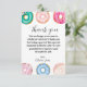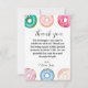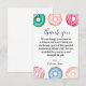 Esta tarjeta de agradecimiento súper linda combina bien con nuestras invitaciones de cumpleaños y letrero de Olivia's Sweet One. El borde colorido de donas la hace perfecta para cualquier cumpleaños o evento con tema de dulces. El mensaje es personalizable para permitir que estas tarjetas de agradecimiento se utilicen para cualquier evento. ¡Agrega un toque personalizado al mensaje, si lo deseas!