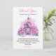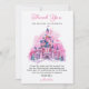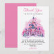 Celebre el primer cumpleaños de su pequeño con esta encantadora tarjeta de agradecimiento de acuarela del castillo rosa, perfecta para expresar gratitud con un toque de magia de cuento de hadas.
